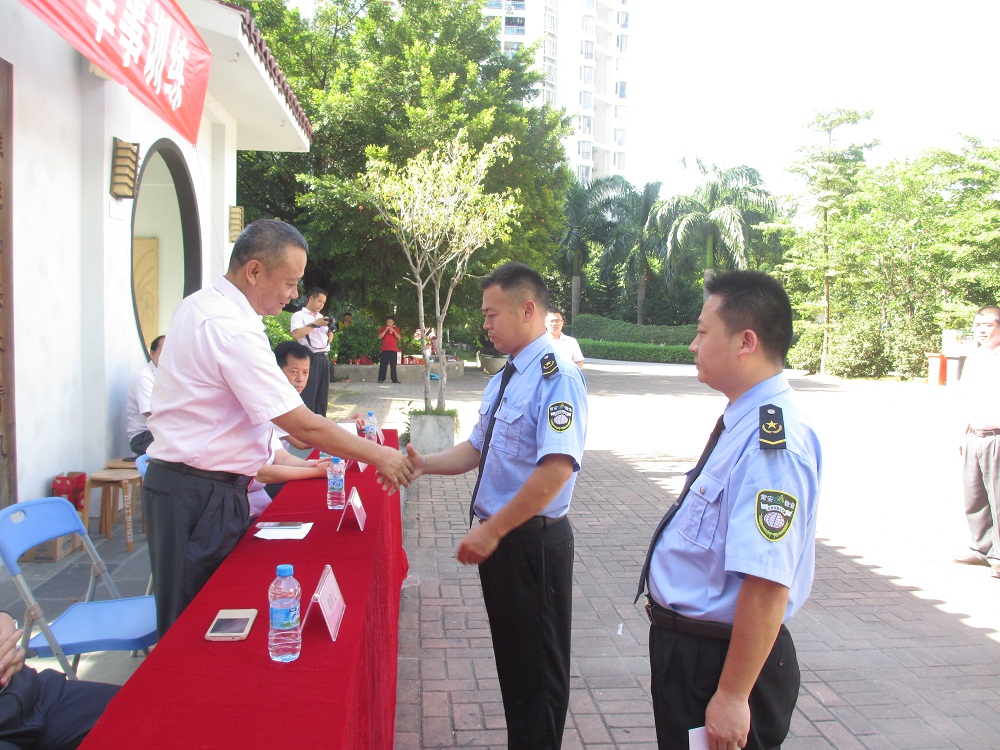 2016年7月29日下午15時,深圳市常安物業(yè)服務有限公司組織退伍軍人在前?;▓@三期廣場舉辦了“常安物業(yè)2016年慶八一軍事訓練”活動。在常安物業(yè)公司領導的高度關注下,退伍軍人不懼高溫的天氣,頂著酷暑完成交通指揮手勢、疊軍被、消防演習三個活動內(nèi)容,為鼓勵軍事化管理工作的持續(xù)開展,本次活動頒發(fā)了一、二、三等獎。最后,張武董事長進行了精彩的講話,鼓勵退伍軍人把部隊嚴明的組織紀律,嚴謹?shù)墓ぷ髯黠L,嚴肅的工作態(tài)度和不怕吃苦、勇于拼搏、甘于奉獻的好思想、好傳統(tǒng)、好作風帶到各自的工作崗位之中,發(fā)揮“退伍不褪色”的軍人品質(zhì)。